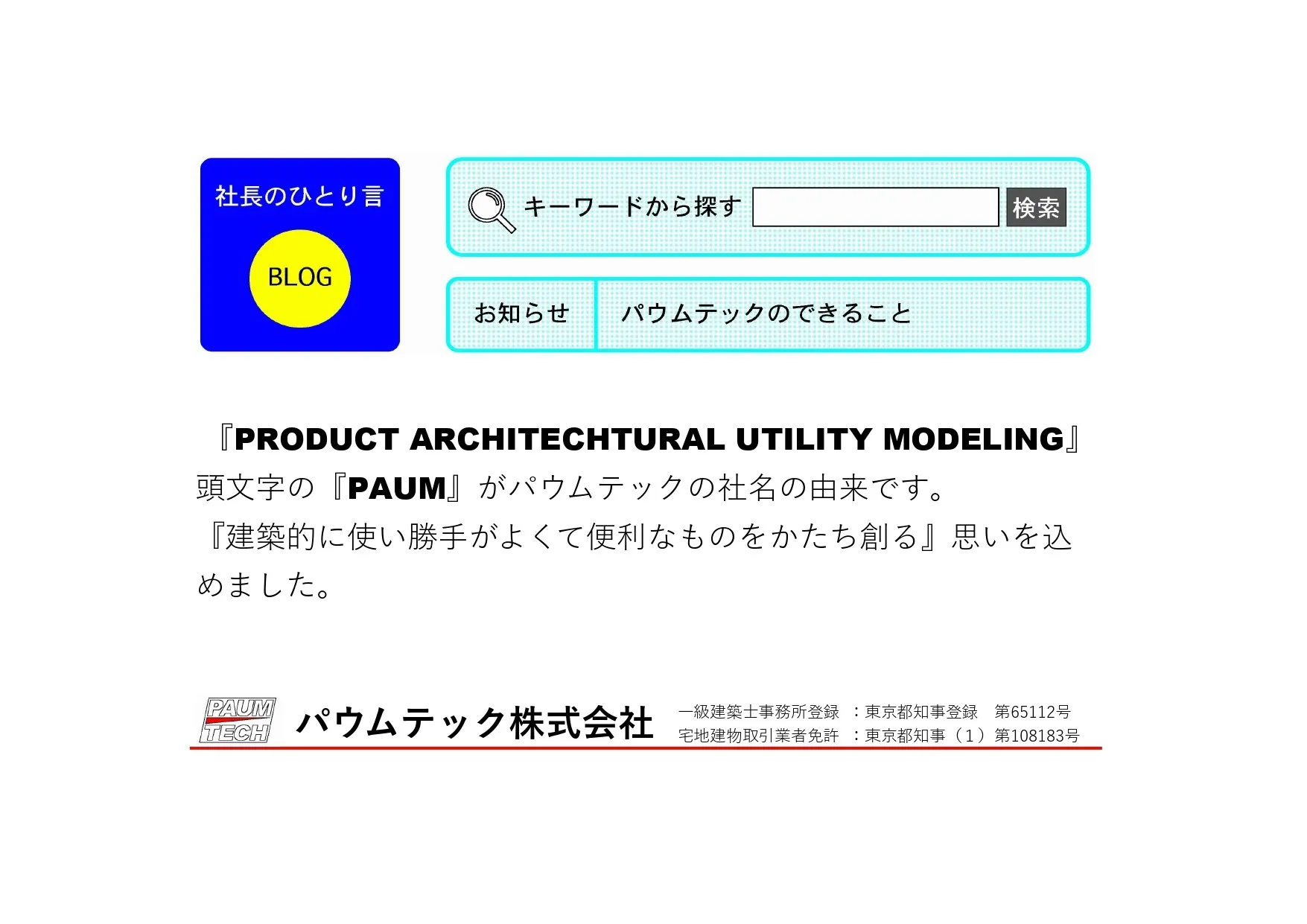 パウムテック株式会社としてのホームページ(www.paumtech.co.jp)と一緒に閲覧してみて下さい。