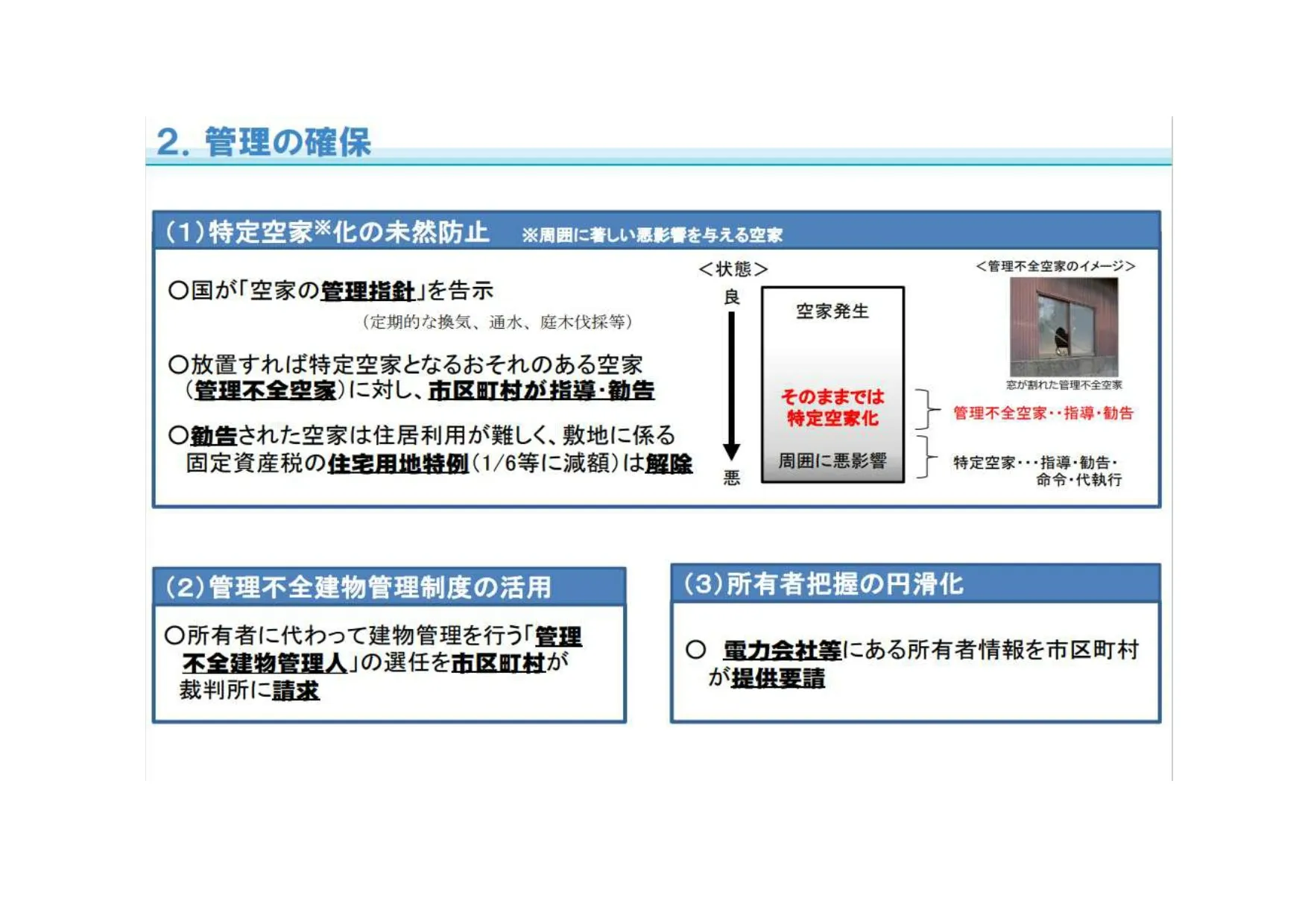 『管理不全空き家』認定制度がはじまりました。 先のブログでふれた『特定空き家』に指定して空き家を減らそうとする法律「空き家対策特別措置法」に『管理不全空き家』というキーワードが加えられました。これは『特定空き家』になってしまう前にその…